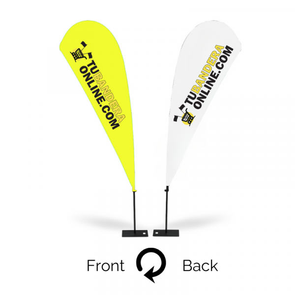 - A diferencia de los Fly Banners tradicionales donde la impresión del anverso se transfiere al reverso, este modelo permite personalizar cada lado con un diseño diferente.