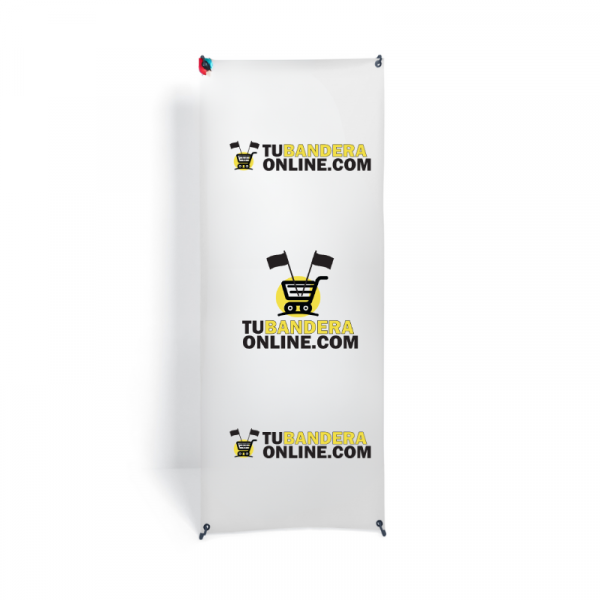 La lona es de PVC Frontlit de 510 g/m² con un ollao de aluminio dorado en cada esquina para poder anclarlo a la estructura. El anverso es totalmente personalizable con el diseño y colores que desee tu cliente.