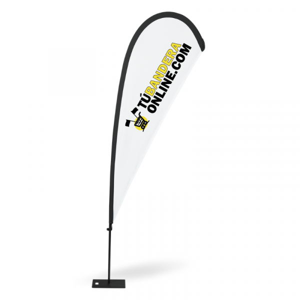 La bandera de playa por naturaleza, su fabricación en forma de gota o lágrima invertida es idónea para resistir el impacto del viento. Es un reclamo publicitario que se adapta a las necesidades de tu negocio, es portátil y versátil para uso exterior o interior. Disponible en varios tamaños. Impresión “inkjet” con sublimación en CMYK sobre poliéster de 115 g/m² por una cara. Totalmente personalizable.