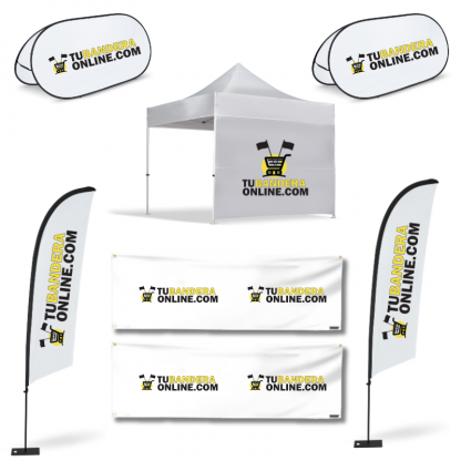 Pack TORNEO (Carpa 3×3 + Pared + 2 banderolas + 2 Golf Banner + 2 pancartas de 2x1m)